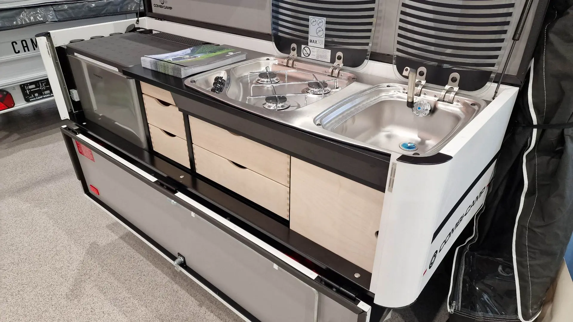 Combi Camp Country kemur með fortjaldi, lúxus eldhúsi og kassa á beisli.