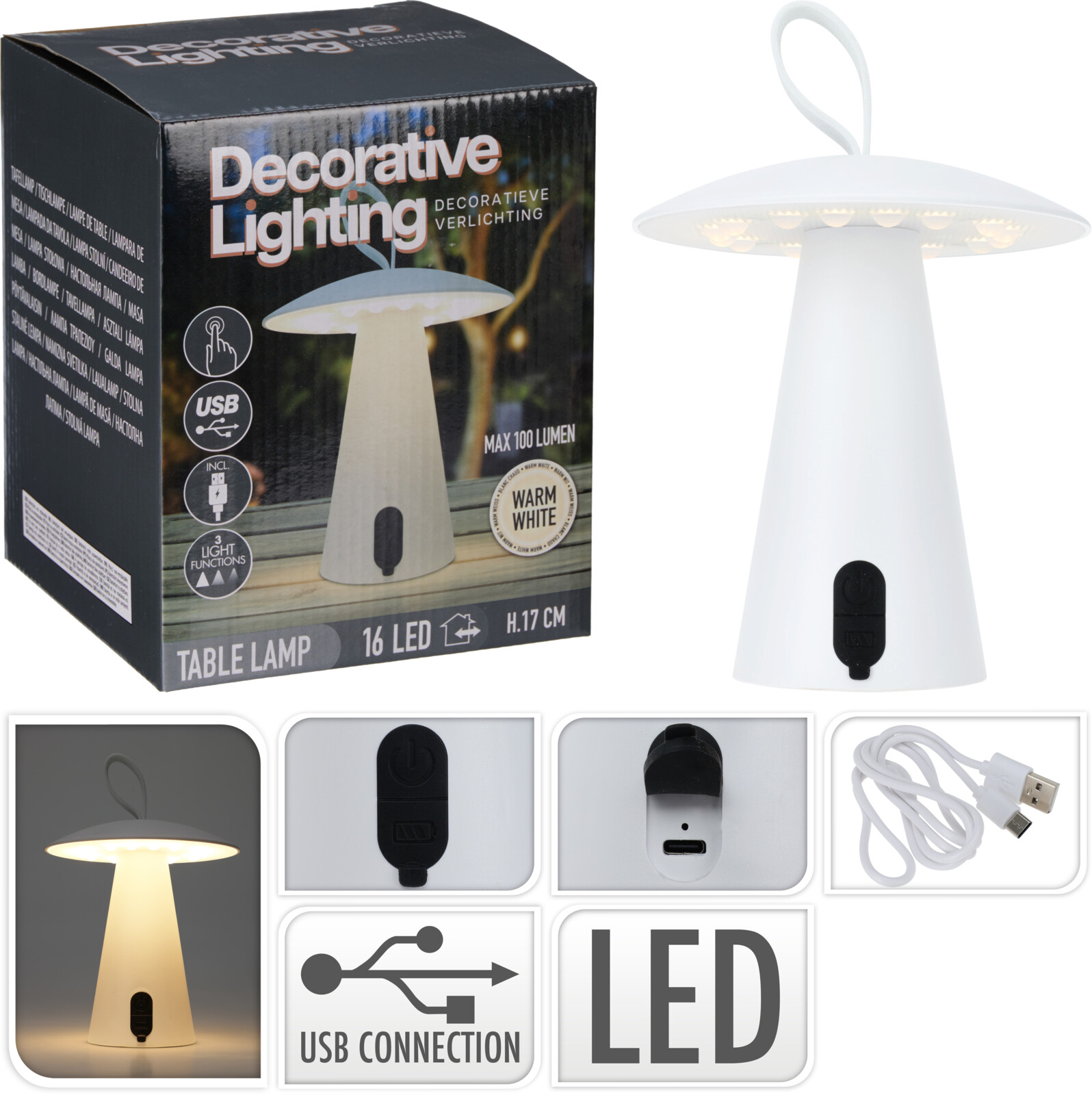 Borðlampi USB endurhlaðanlegur hvítur